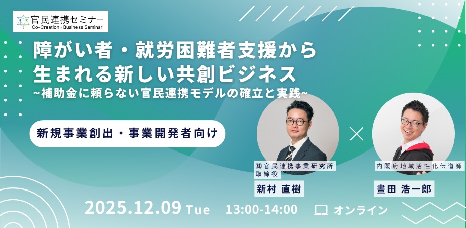 登壇者として、全国各地で官民連携を多数支援してきた 弊社 取締役の新村と、2025年4月から八王子市で「共創の窓口」を立ち上げられた阿部田 直樹さんが参加し、具体的な成功事例や進め方、八王子市での最新の取り組みについてお話しいたします。