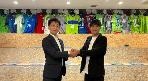(写真:左から、株式会社官民連携事業研究所 代表取締役社長 鷲見 英利、株式会社 湘南ベルマーレフットサルクラブ 代表取締役社長 佐藤 伸也)